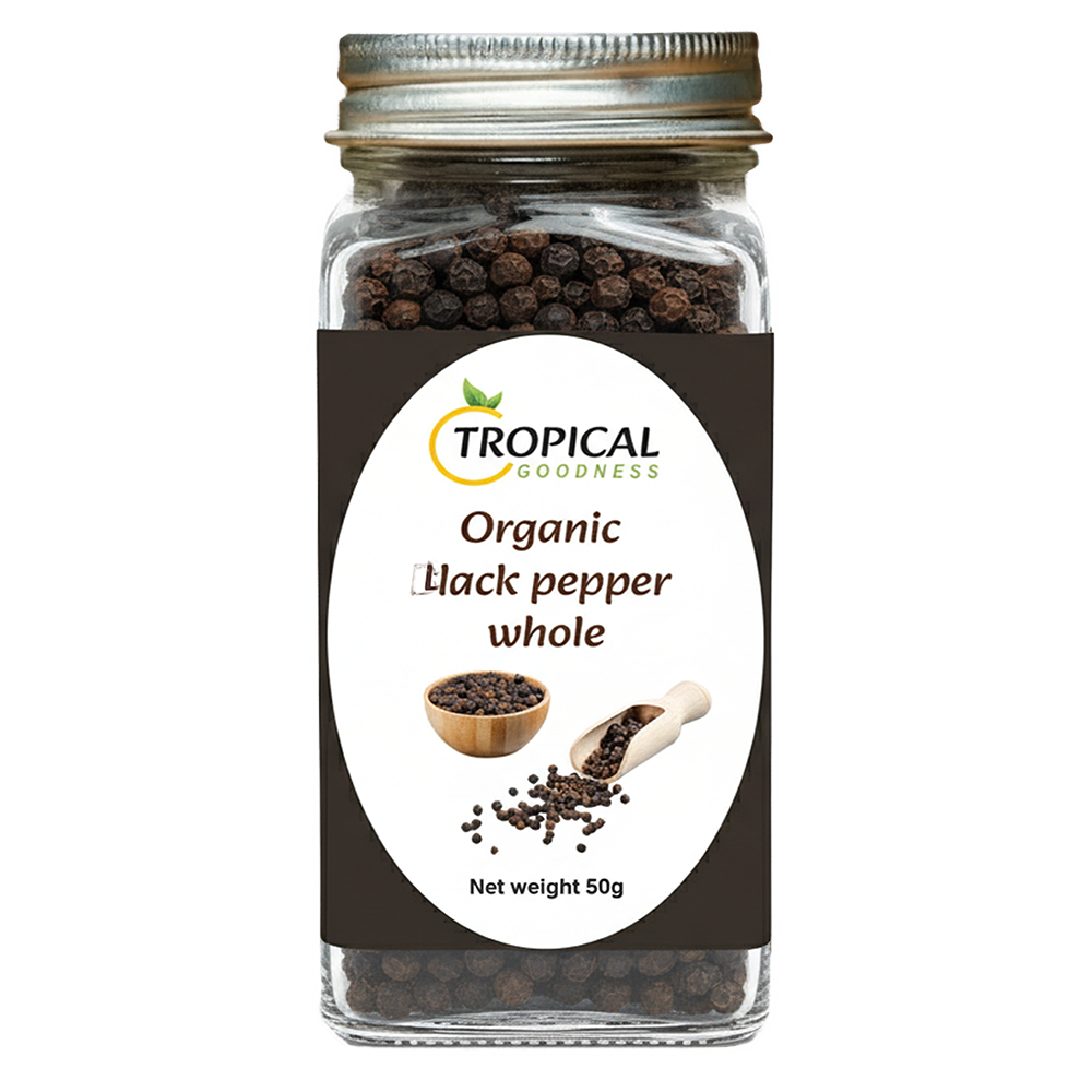 Tropical Goodness, which is known for obtaining premium peppercorns from the best places, sells the greatest grade of black pepper. Our black pepper has huge, homogeneous peppercorns with a dark, rich colour and a powerful, pungent aroma. Tropical Goodness is sourced from places known for its ideal growing circumstances resulting in a strong, flavour profile in each grain. This black pepper is a great choice for culinary excellence since it is carefully dried to preserve its natural oils and moisture.