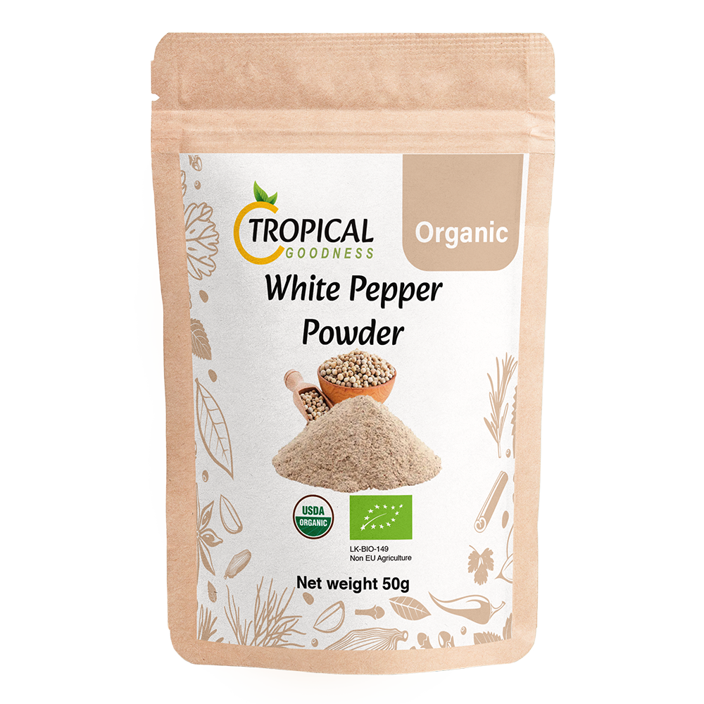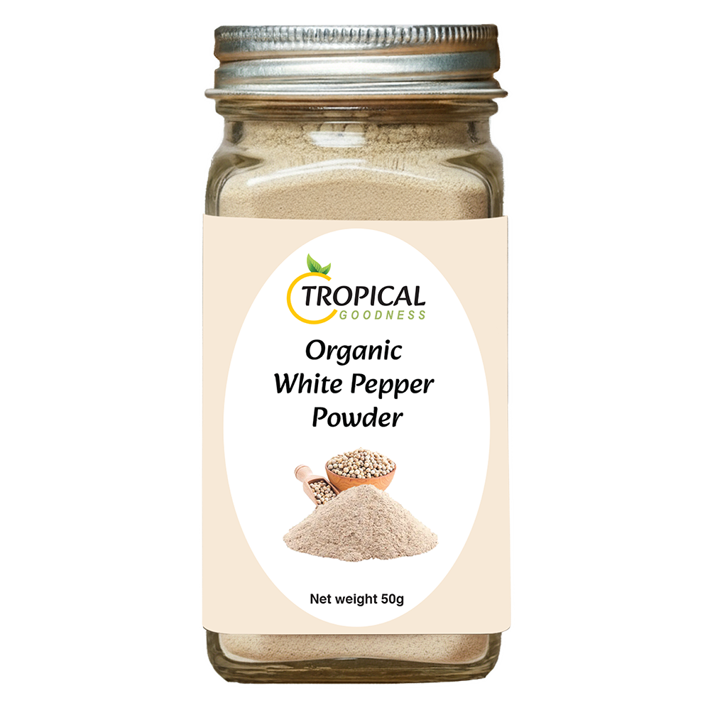 Tropical Goodness, known for obtaining premium-grade peppercorns from the best farms, offers the greatest quality white pepper. Their white pepper is meticulously processed to remove the exterior black shell, exposing the smooth, light-coloured center. This produces a gentler, more refined flavour than black pepper, with delicate earthy, and somewhat fermented undertones. Perfect for recipes like soups, sauces, and light-coloured dishes that require a refined pepper flavour without the dark flecks. Tropical Goodness guarantees that their white pepper is of the best quality, adding a pure and aromatic flavour to your culinary creations.